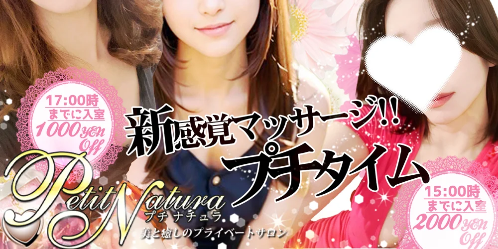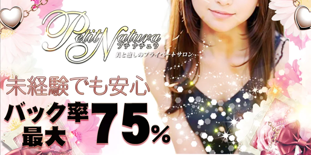 洗練されたセラピスト達による様々な手技で日頃の疲れた体を癒させて頂きます! 【至福の一時】 【最高の癒し】 【心身のリフレッシュ】 をご提供致します。 【心と身体の癒しを追及】 究極の癒し空間 当店をご利用したことがないお客様は、是非一度お越しいただき、ご堪能下さい。 プチナチュラへ行けば必ず良いセラピストに出会える。 と言っていただけるようなお店作りをコンセプトとしております。 お客様に対してのおもてなしの心を忘れず、最高の笑顔で貴方様をお出迎え致します。 初めての方もお気軽にお越しくださいませ♪